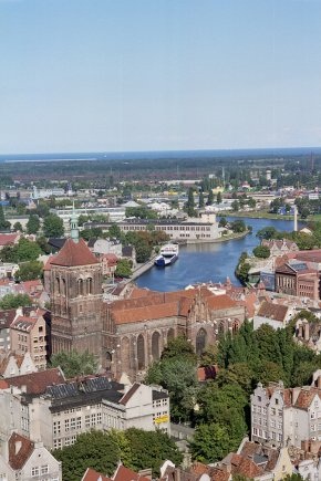 Гданьск, прежде известный как Данциг, был также разрушен во Второй Мировой Войне, но был также восстановлен к его прежней красоте. Из достопримечательностей наиболее интересны Ратуша, Золотые Ворота 17-го столетия и Готическая церковь - самая большая в Польше.